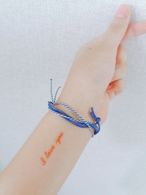 이건 타투스티커!! 손목 뒷쪽이 젤 예쁠거같아서 했당♡ 종이 뒷면에 물뭍히고 꾸욱 누르고있다가 살살뜯어내면 예쁘게 돼!!