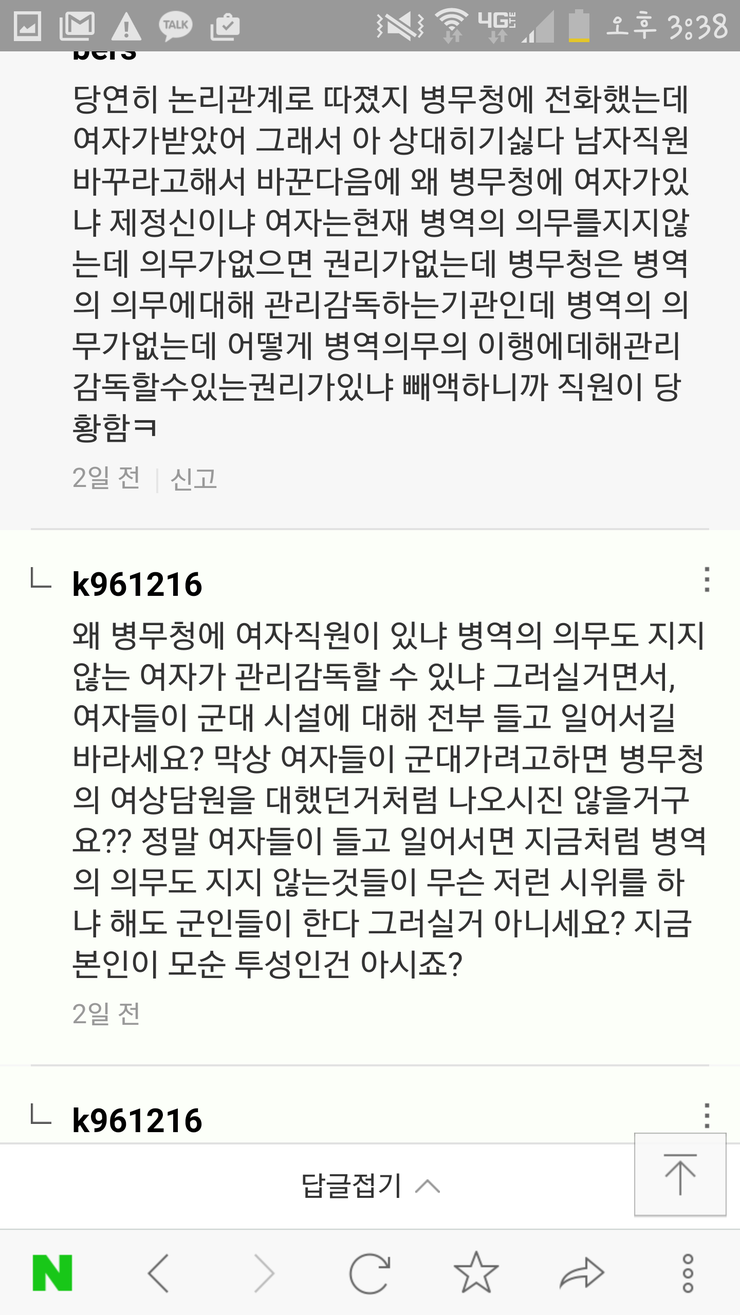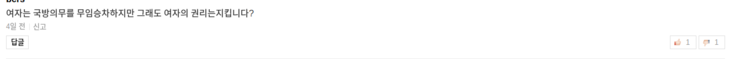 즉 불만이 있다면 여성들한테 말고 재판소/국방부/병무청에 건의할 것.