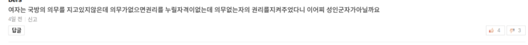 어떤 댓글러: 여자들이 다 들고 일어섰으면 바뀌었을거다 '의무를 해야 권리가 따라온다' 시전.