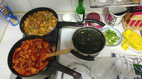 먹는양이 ...음청나다...ㅋㅋㅋㅋ설마 혼자 다먹는건아닐거같은데..근데..혼자먹는거 담은것도 음청남...중간에 밥이랑 콘샐러드라면같은거 ..ㅋ.ㅋㅋ