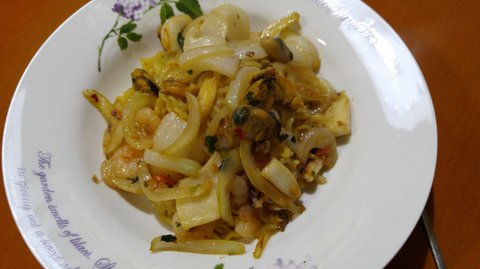 이건 라면사리를 이용한 해물 굴소스 볶음라면이에요