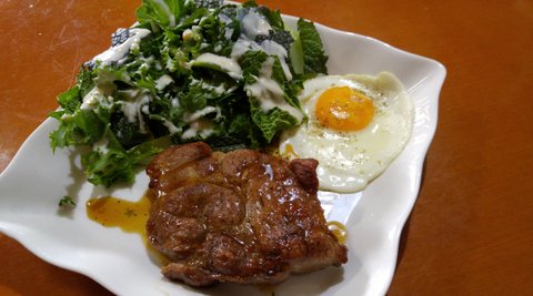 정말 두껍게 썬 목살을 겉은 바삭하게 굽고 오븐에 15분정도 넣어뒀었습니다