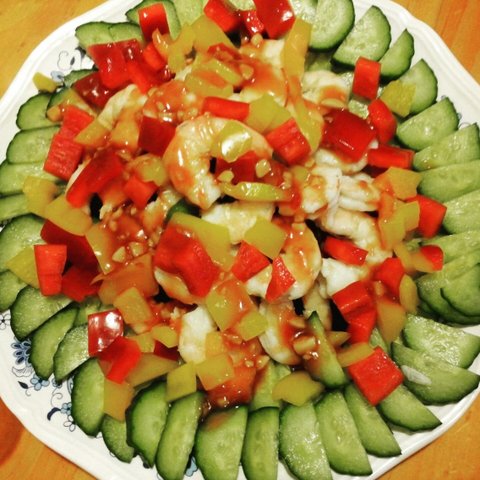 오이 파프리카 새우 조합에 칠리소스베이스한 저 소스는 조합이 예술입니다