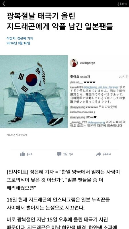 인스타에 태극기 올려서 까이는 연예인