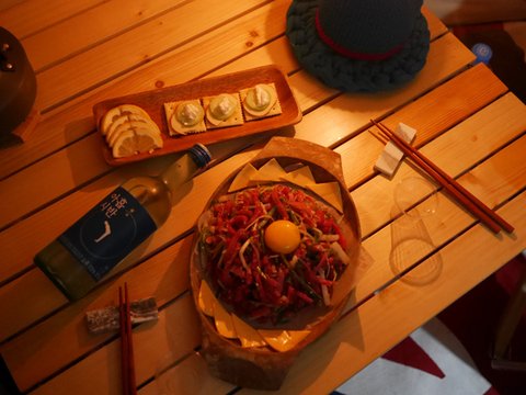 육회포장해와서 소주한잔 걸치며 먹습니다