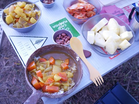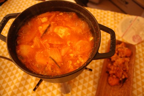 캠핑장에서 빠질 수 없는 김치찌개도 끓여먹고요