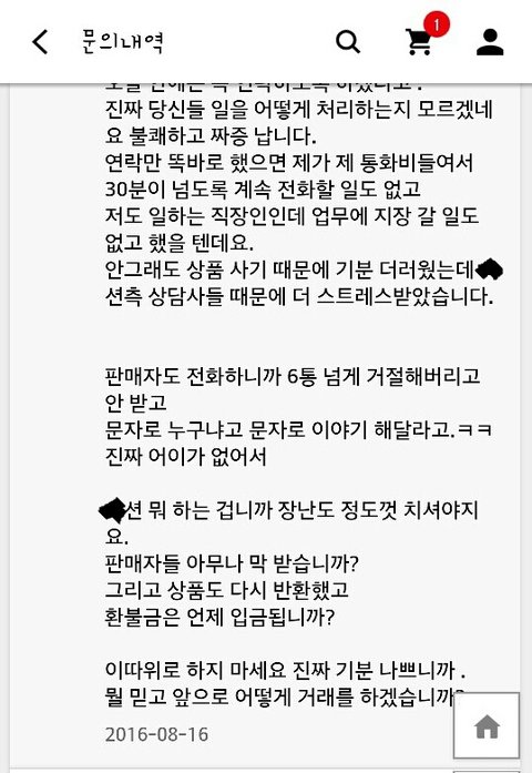 판매자한테 졸라 뭐라 했거든?