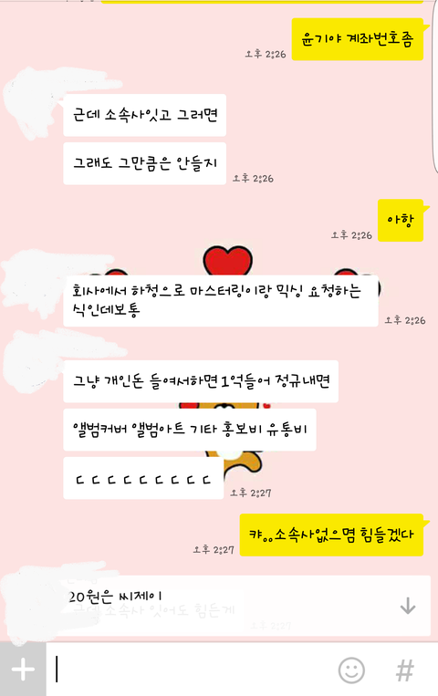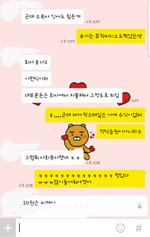 윤기가 혼자일하는 사람이 아니기때문에 그정도의 비용까지는 들지 않지만 그래도 많이드는것은 마찬가지인가봐 사회봉사급이라니까..