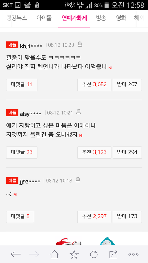 브이하지 않았다면 이정도로 성희롱하는 댓글들은 안달렸을거임