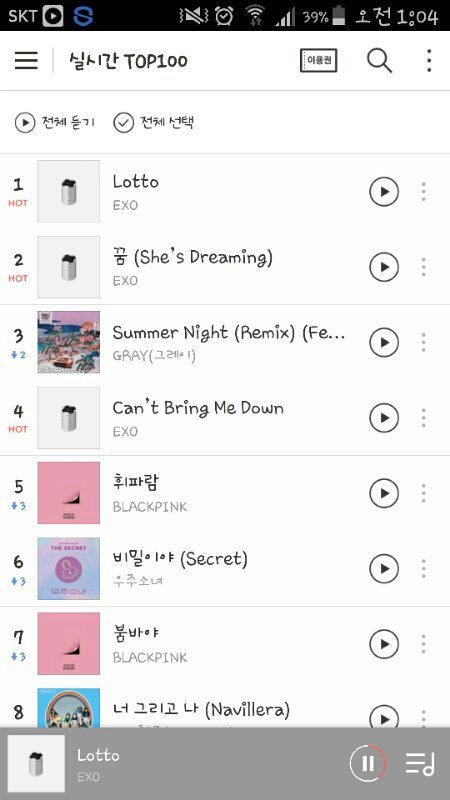 우리 새벽6시 차트 보면 이그젝트 수록곡까지 다 줄 세웠었어... ㅎㅅㅎ (자랑
