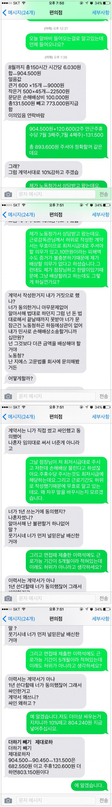 전 그냥 알았다하고 나왔습니다. 그러고 월급날 점장님한데 월급 언제나오냐고 문의를 드렸고 점장님은 이렇게 문자를 보내시더라고요.