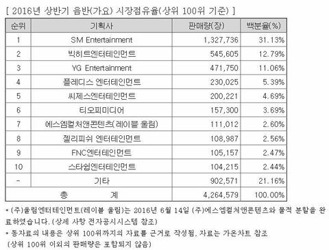 플디 상반기 음반 시장 점유율