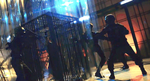 돇이 철장 안에 갇히고 백횬이 발차기하는게