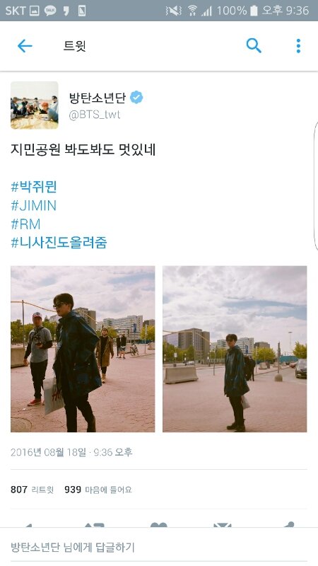 처음에 무슨 뜻인가 했더니 어떤 복덩이분이 공원이 park 라는 의미를 가지고 있잖아ㅜㅜ Ji Min Park 이거였나봐 나만 소름 돋았니 ㅠㅅㅠ??... +스밍인증 문제 펑
