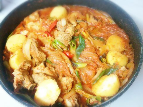 해외여행 후 한국맛이 그리워서 후다닥 한 돼지갈비묵은지찜 ! 당면은 역시 ♡ 돼지갈비찜은 푹 익어서 입안에서 살과 뼈과 부드럽고 자연스레 해체되는 그 느낌이 매혹적이다