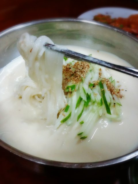 진짜 콩을 갈아서 콩물에 그대로에 국수를 말은 콩국수