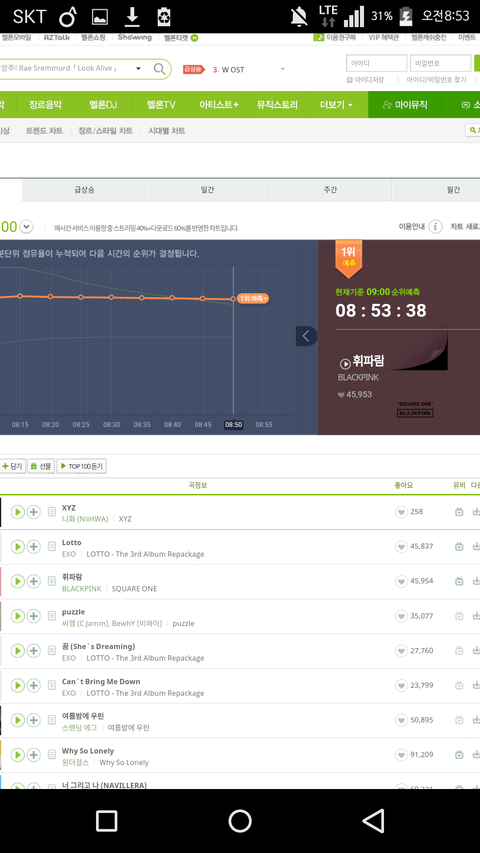 진짜 차트 보면서 ㄹㅇ로 핵빡치는데 다들 정신차리고 스밍 돌리자 피치 못할 사정 없으면 멜롱은 음소거도 집계 되니까 이어폰 껴 놓고 놔둬도 돌아가니까 ㅈㅂ 해 줘 얘 데이터 없어도 스밍 된다고