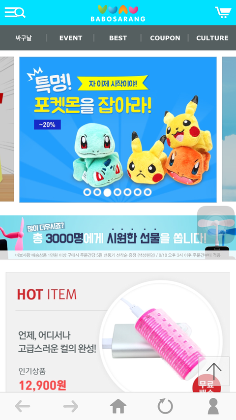 ㅇ ㅏ 요즘 날씨 너무 더워... .. .너무 더워서 휴대폰에 쓰는 선풍기 이런거 사려고 보다가 만원 이상 사면 증정이래서 고민중 ㅠㅠ 바보사랑이라는 사이트인데 페북에서 첨봤는데 노트나 펜도 예쁜거 많당!!!