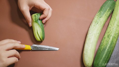 그래서 촉촉해 보이는 표면을 오이 가죽으로 덮어 주었습니다.