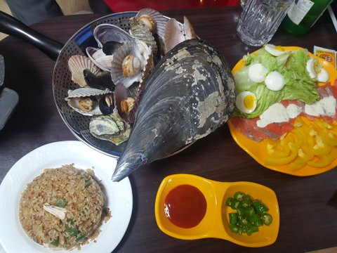 조개찜 밖에서 사먹으면 넘 비싸서ㅜㅜㅜㅜ 마트갔더니 만원에 한 상자 세일해서 팔길래 얼른사와서 해감시켜서 조개찜해먹고~ 연어샐러드랑 필라프도같이먹었어요