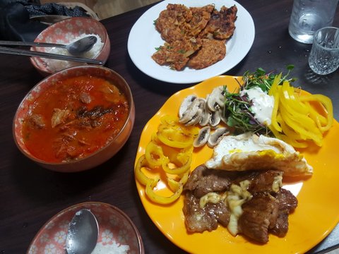목살 스테이크랑 김치찌개에요~