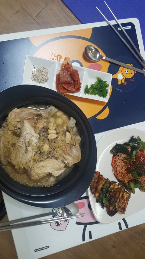 백숙 비빔막국수랑 세트로 사먹으면 4-5만원하던데ㅜㅜ넘비싸요 해서드세요 비빔국수랑 가지무침도 같이 해먹었어요 비쥬얼은 별로네요ㅜㅜㅜㅜ