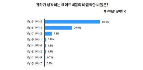 그래서 현재 "데이트 비용은 어떻게 분담하는가?" 에 대한 현실이 저 통계이고.
