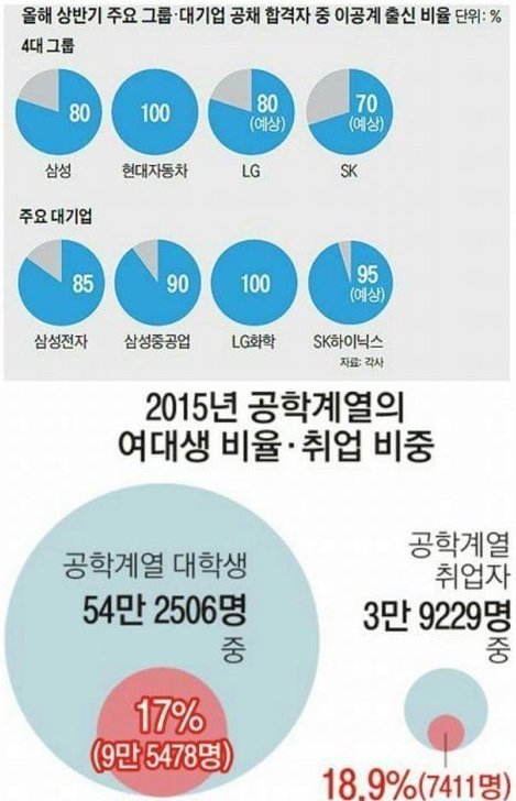이공계가 취업에 유리하다는 건 상식인데 여성들의 이공계 진출은 아주 낮은 편이야.