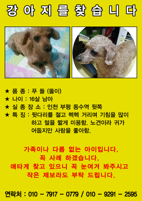 노견이라.. 너무 미안하고, 제발 찾고싶어요.