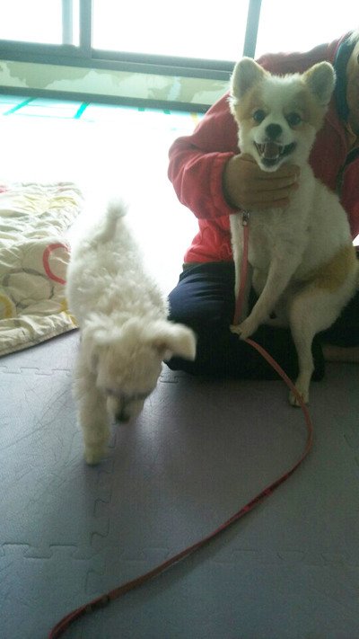 뒷다리에 근육이 하나도 없을만큼 산책이 무엇인지 몰랐고 잔뜩 겁먹은 표정으로 사람에게만 매달리는성향을 보였던 아이가 매일 같이 반복적으로 산책훈련을 시킨결과 현재는 목줄만 들어도 산책가는줄알고 좋아서 방방 뛰는 아이가 되었습니다.