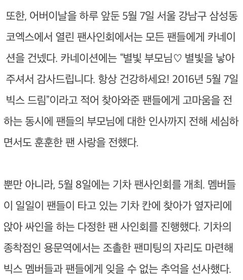 끼니를 거르는 팬들을 위해 빵이나 간식을 직접 나눠주기도 했다