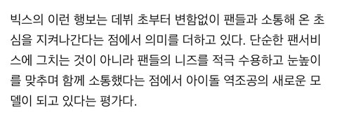 참고로 빅스는 다른 연예인과는 달리(안 받는 연예인도 있음) 팬들에게 작은 조공도 받지않음.