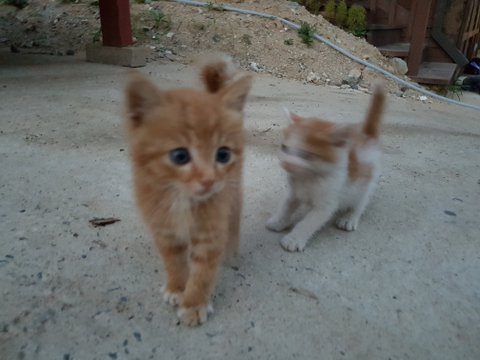 시골집에 오니 어미를 잃은 새끼고양이 두마리가 있네요