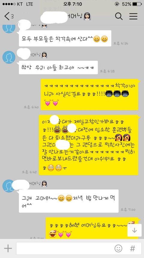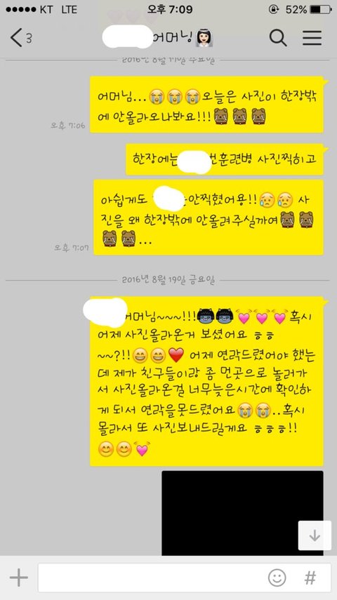 어머님이랑 저는 남자친구 수료 때문에 3주정도 꾸준히 연락을 했고 보통은 제가 다음 군사카페에 남자친구 사진이 올라오면 혹시 어머님이 카페에서 사진같은거 찾아보시고 하는게 익숙치 않으실까봐 카톡으로 동기들이랑 찍은 전체사진이랑 제 남자친구만 확대한 사진 보내드리는 식이였어요. 분위기는 항상 화기애애 하구 어머님도 답을 작게라도 꼬박꼬박 잘해주셨는데 제가 생각하기에 카톡에서 실수한 이후로 답장도 안해주시고 뭔가 예전이랑 달라졌다는 느낌이 강하게듭니다ㅜㅜ..