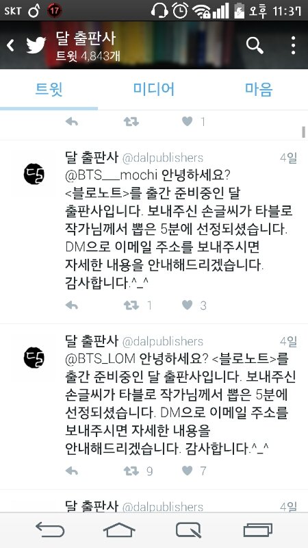 타!블로 작가님이 5명 뽑았는데 그중에 2명이 아미~~♥