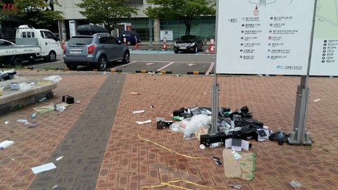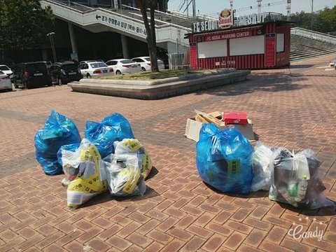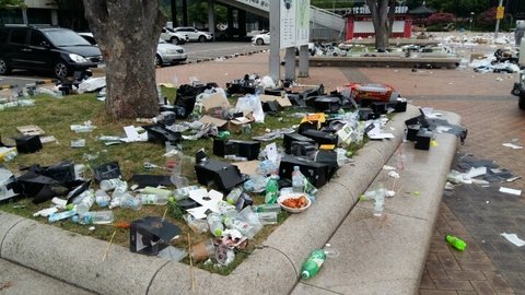 어제 팔만명이 넘게 오는 콘서트장에 쓰레기통은 2개뿐이였고, 우리는 임시 쓰레기통까지 만들었지만