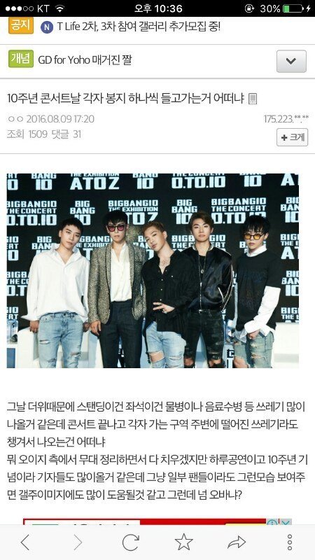 내가 처음에 콘서트 꽉차서 자랑스럽다고 글올렸던게 원본이거든?