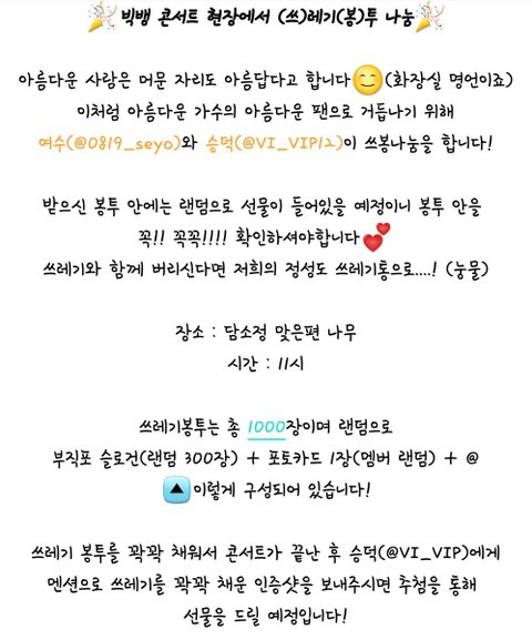 마지막으로, 어제 혹시라도 쓰레기 막 버린 빂이 혹시라도 있다면 제발 반성하고,