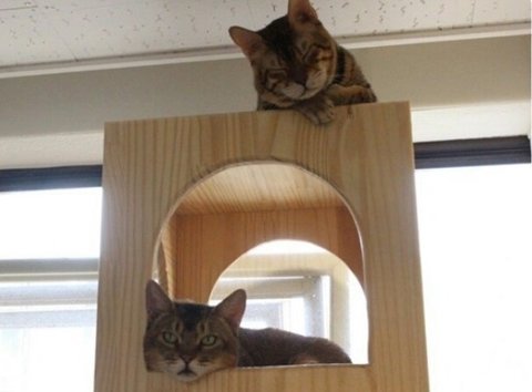 아비니시안 냥이 1마리, 뱅갈 냥이 2마리
