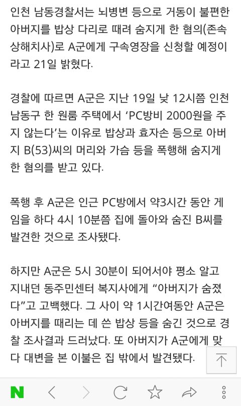 난 어제 인천 남동구에서 일어난 10대 아들이 자기 아빠 죽인 사건 가해자인 10대 아들과 좀 얼굴을 본 적이 있는? 사람이야. 내가 이 사건을 접한건 인터넷이랑 주변사람들을 통해서 알게 된건데 나도 처음에 무척 놀라고 어이가 없었어. 내 주변에서 뉴스에 나온거는 경찰인 삼촌이랑, 어제 그 사건 가해자A뿐이여서 그런가... 아 주저리가 많았네 이제부터 본론으로 들어갈게
