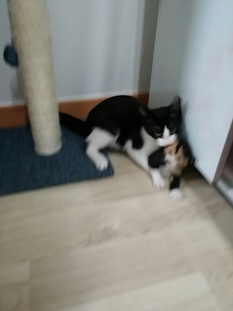 잡으려면 도망가고 잡으려면 도망가는 바람에 잡히지도 않아 어떻게 해야하나 싶다 오늘 아침 남편분께서 그물망을 던져 포획에 성공 하였고 집에 키우는녀석과 바로 합사를 하였는데 그렇게 울던 아이가 울음도 딱 그치고 다행이 키우는아이도 잘받아주고 있지만 구조자분 형편상 세마리를 키울수가 없다고 하세요. ㅠㅠ