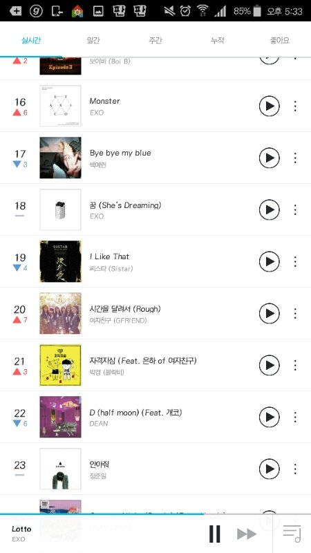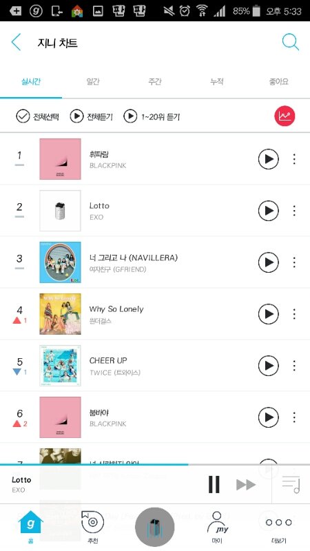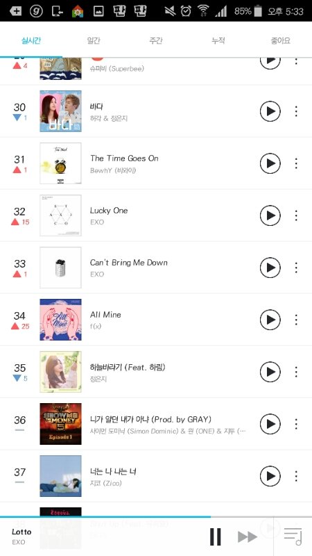 로또 2위에다가 몬스터 16위 꿈 18위, 럭키원 32위 캔트 브링 미 다운 33위 등등 성적 너무 부진해 애들 상 주고싶으면 밥 든든히 먹고 스밍 좀 열심히 돌리자