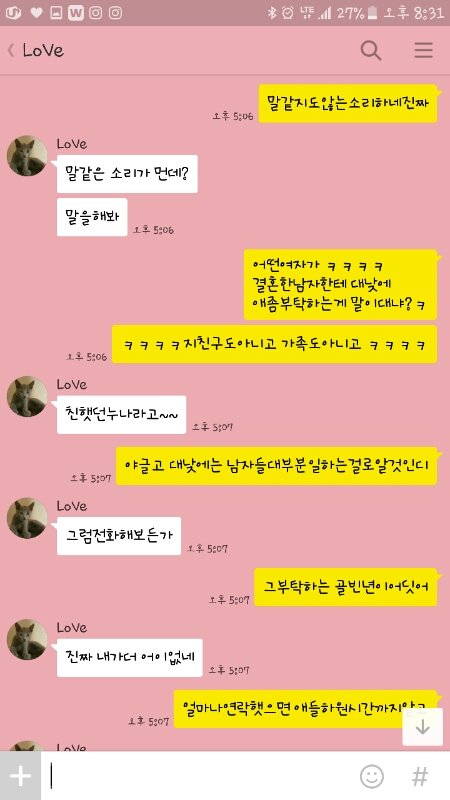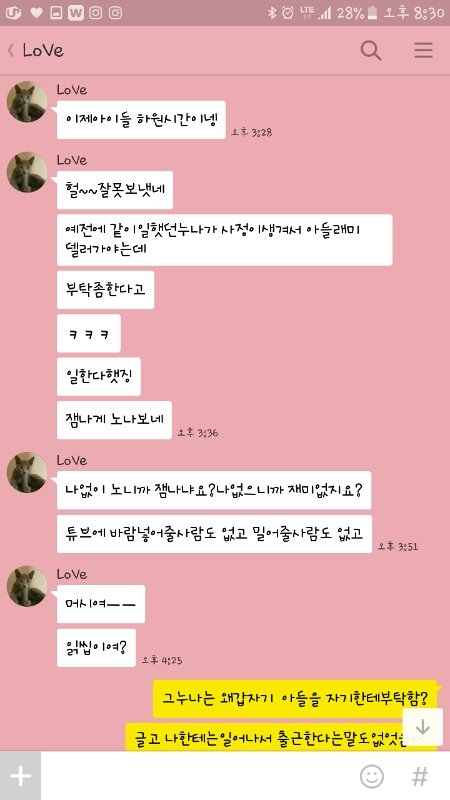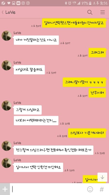 내짐작대로 어린이집선생년이랑 바람났고요