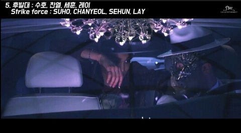 그리고 세훈 찬열 수호는 다른멤버들이 잠입해 시선을 끌 동안 도박장에 습격하는 멤버들이라고 간단하게 볼수있음 습격팀인 찬열 세훈 수호가 도박장으로 향하는 차를 타고있을때 같은 습격팀인 밥씽이가 차안에없던건 그 도박판의 구조?를 알아보기위한 임무를 맡은 멤버였던거임 그리고나서 그 후에 습격할때 찬열 수호 세훈과 같이 들어간거고