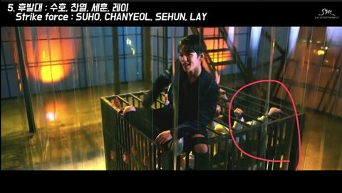 그리고 또다른 설명 백현은 도박꾼들을 철장안에 가둬두고 위로 올라가있었지 근데 그 뮤비를 자세히보면 백현이 혼자 나오는 장면에서