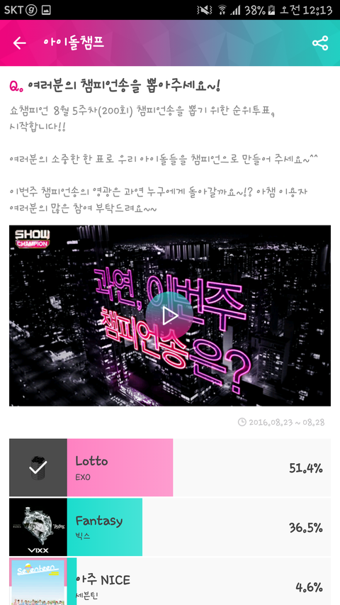 아1챔 쇼1챔 투표 또 떳다 하러가자