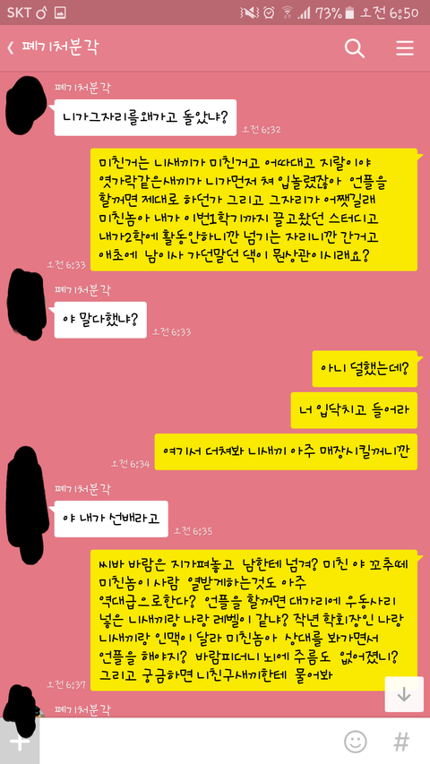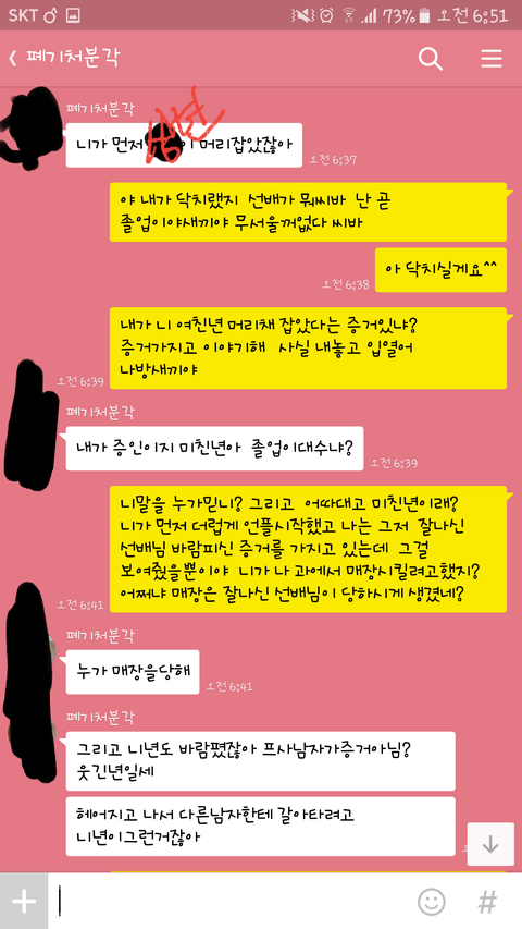 글고 낮에 그새끼가 과오빠들한테 입털어서 글또썼었어