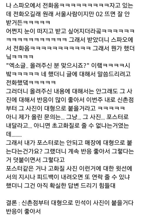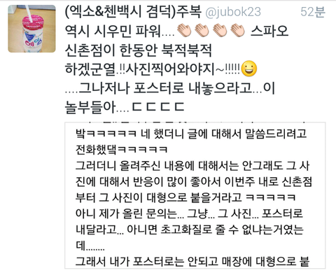 시우민) 민석이사진 반응좋아서 스파오신촌점에 대형으로 걸린댘ㅋㅋㅋ