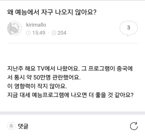왜? 대세 예능프로그램에 안 나오냐고 그런다...