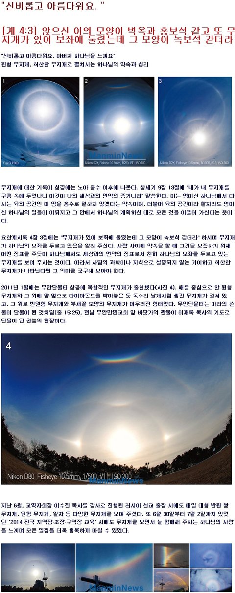 바로 이 꿈을 꾼 뒤 허리디스크와 좌골신경통이 순간에 떠났습니다. 요즘 저는 건강한 몸으로 일하며, 교회에서도 성전청소를 열심히 하고 있습니다. 여러 모양으로 영의 세계를 깨우쳐 주시고 문제 해결해 주신 아버지 하나님께 감사와 영광을 돌립니다.